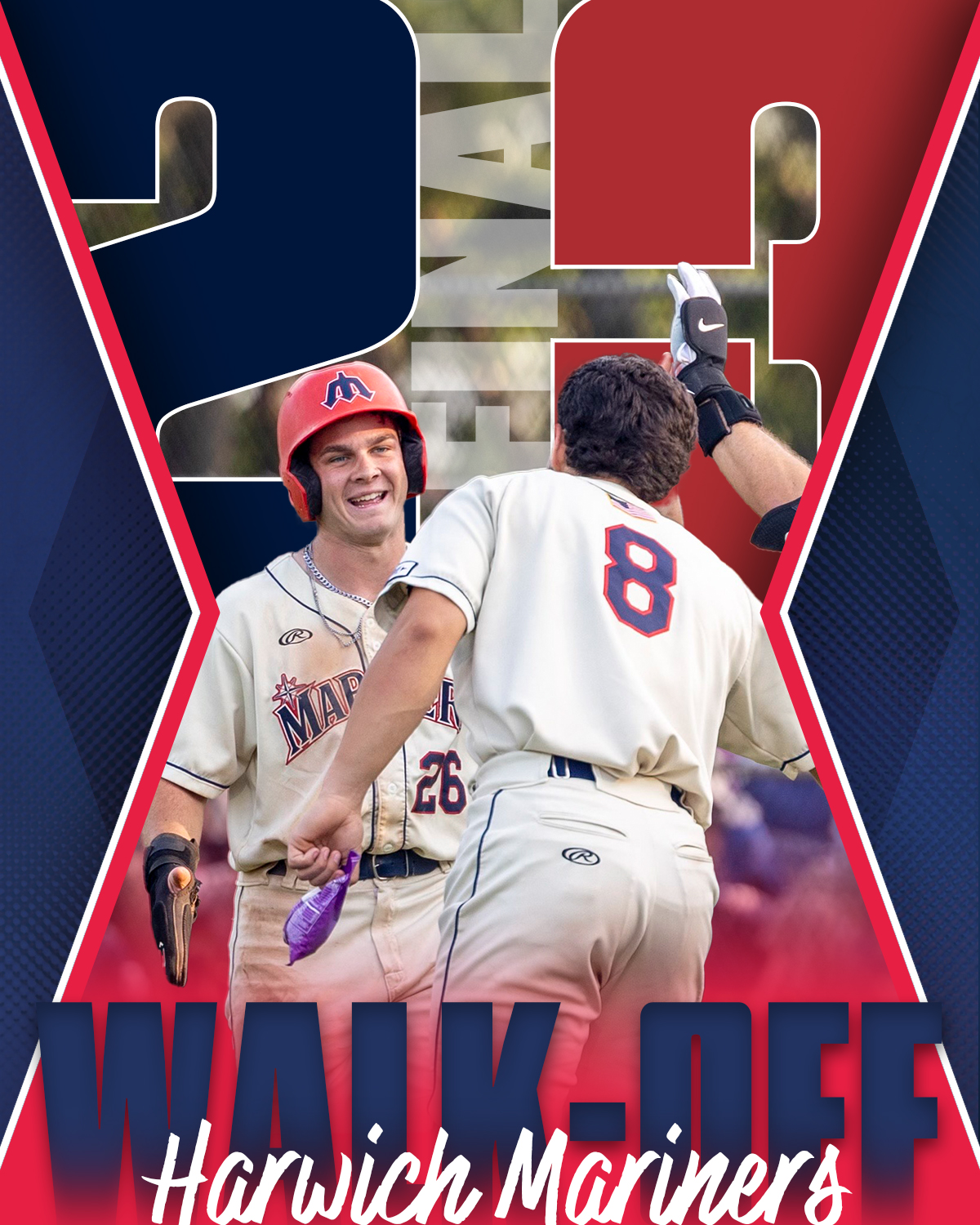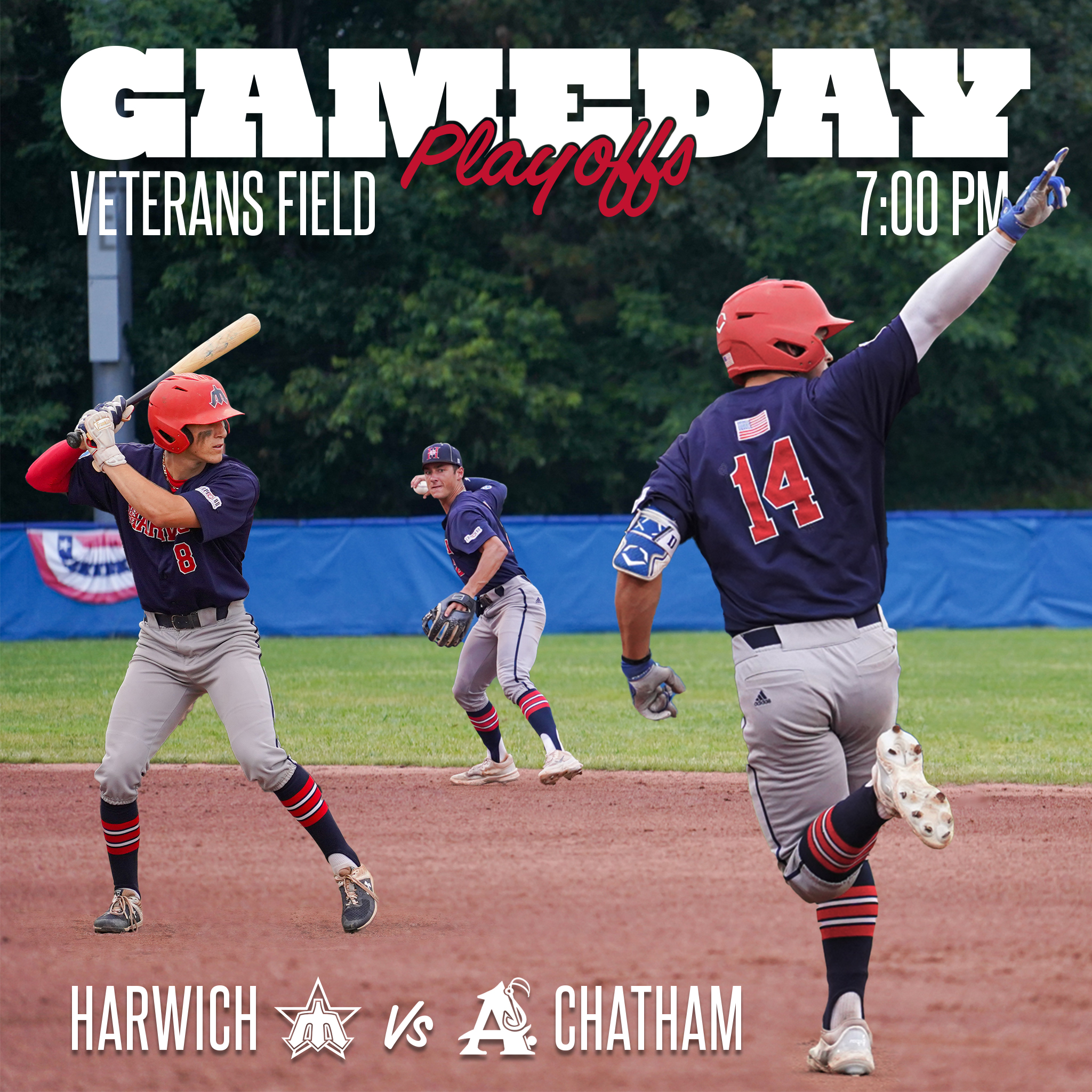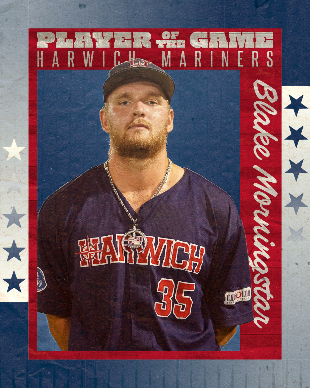 In-season graphics for 2024 CCBL season. Used on various social media platforms by the Harwich Mariners organization.