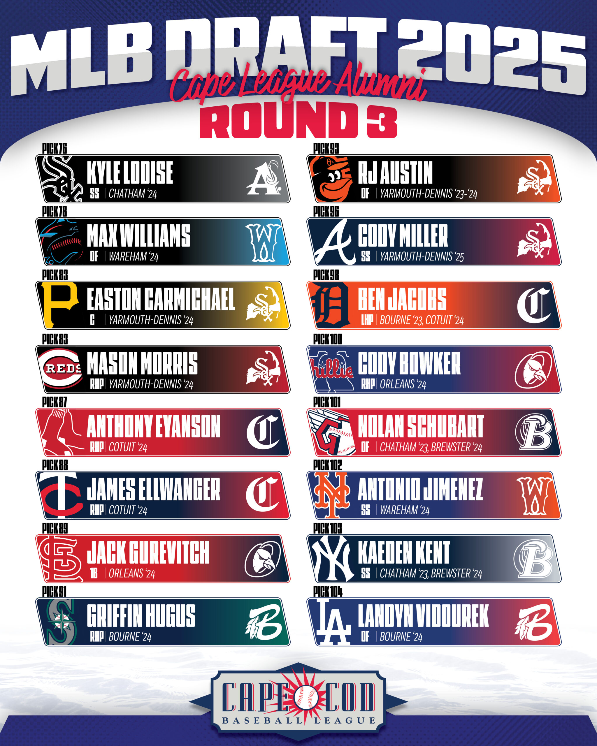 .Miscellaneous graphics made for Cape League social media pages to inform and update fans